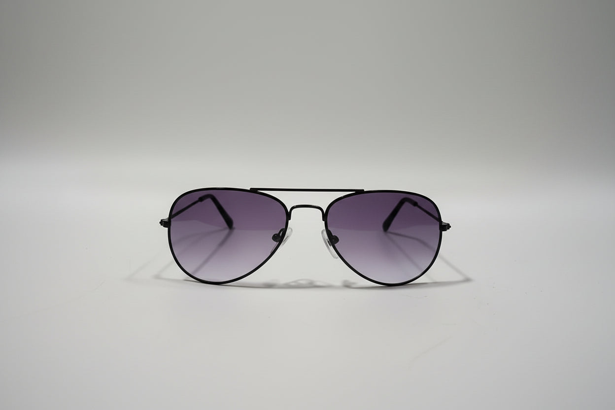 Kids Black Metal Aviator Sunglasses – Classic Frame with Purple Gradient Lenses